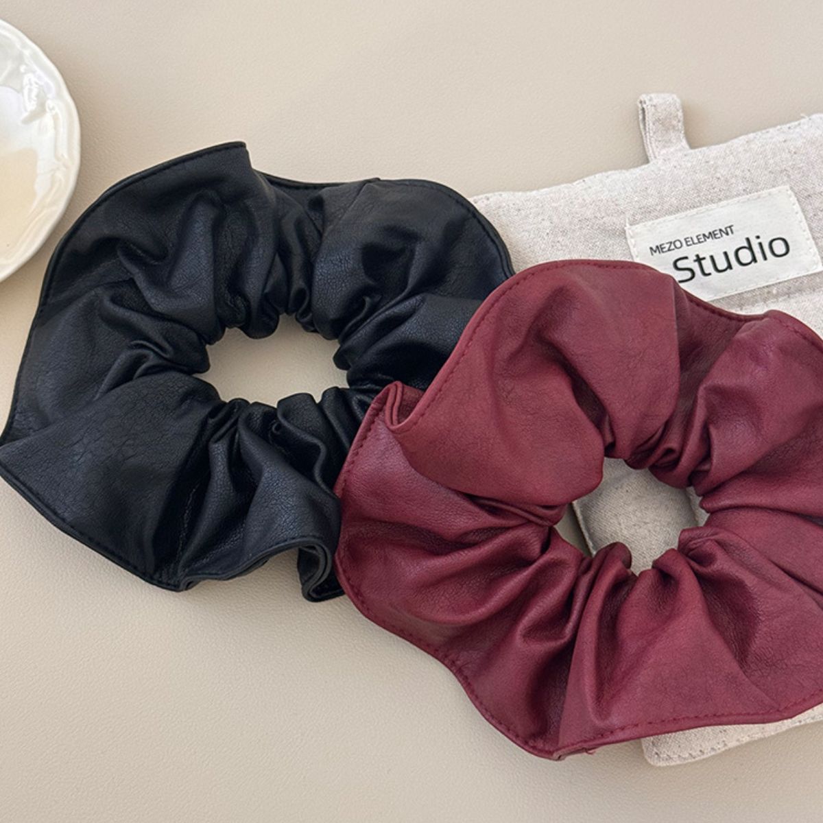 4 Piece PU Leather Elastic Hair Scrunchy