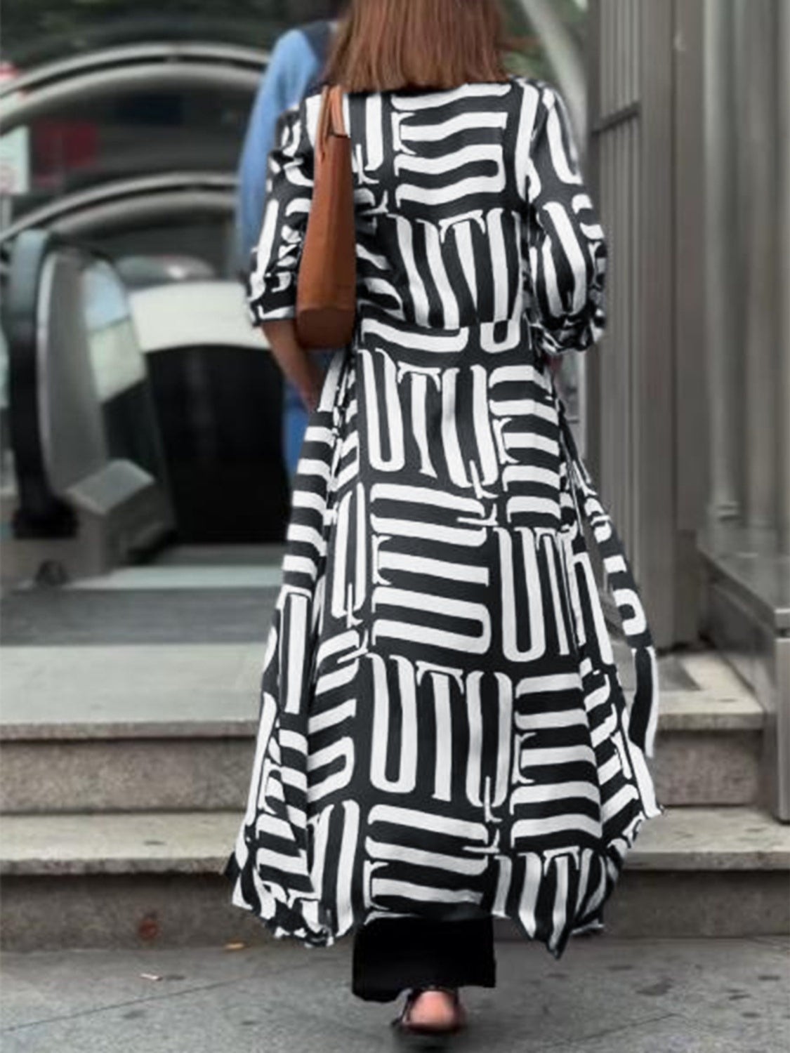 Contrast Collared Neck Long Sleeve Longline Shirt